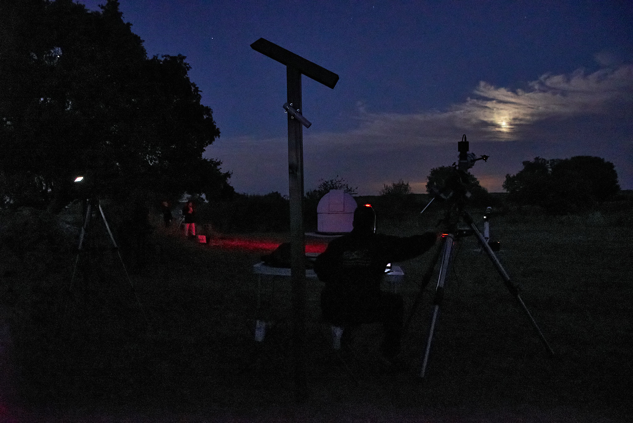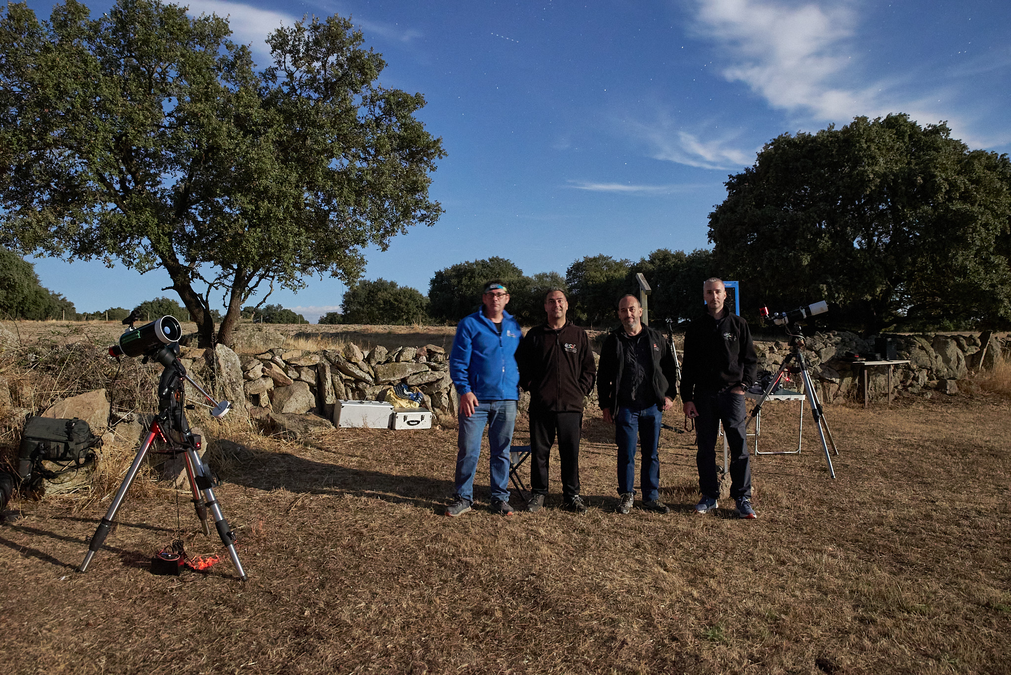 Nos reunimos cuatro observadores de Mintaka y OSAE. Óscar, Pablo, Germán y Jc Martín. Y no con mucha suerte, pues las nubes permanecían inmóviles hacia el este, donde esperábamos que saliera la luna.
