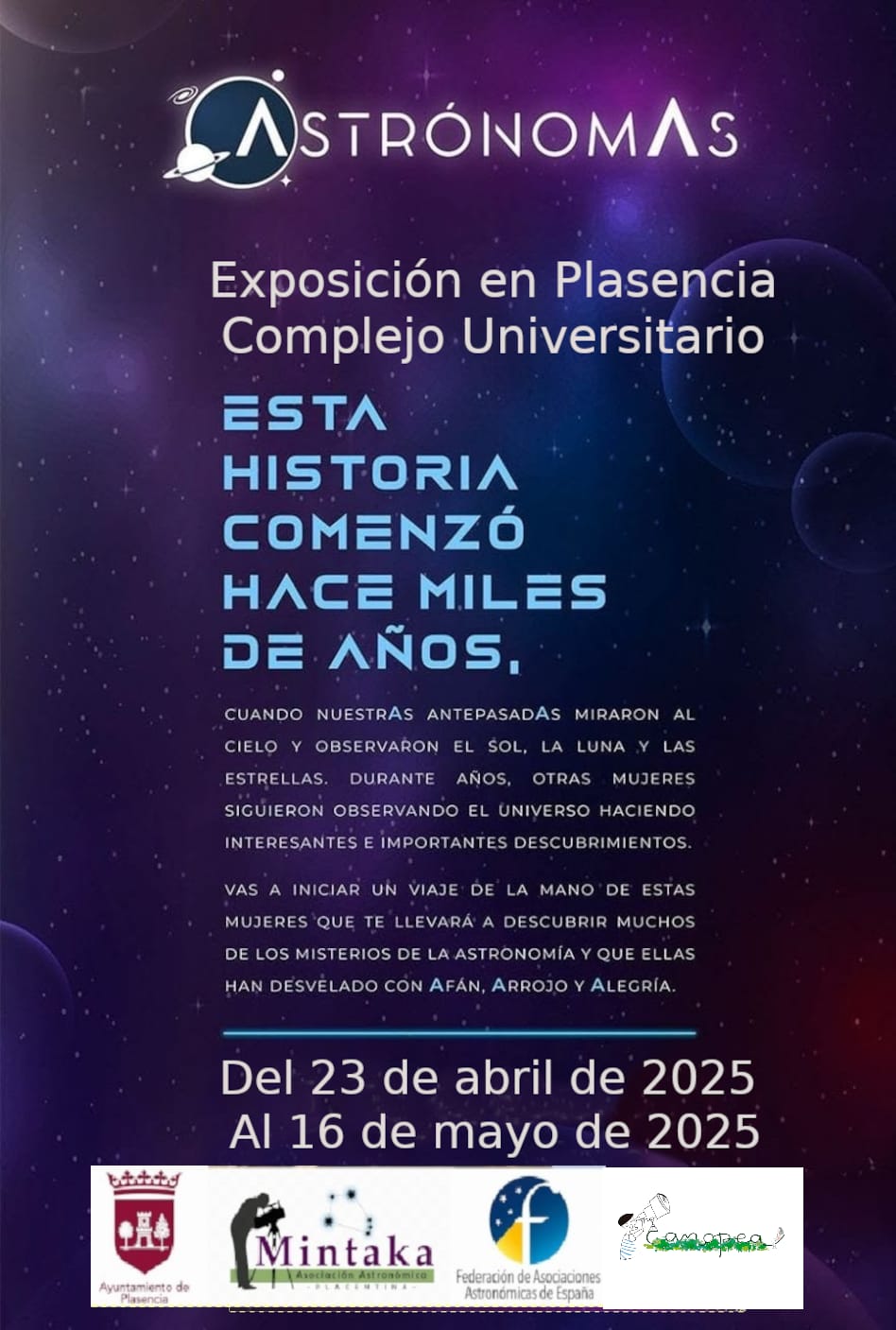 La Asociación Astronómica Placentina Mintaka y Canopea tienen la oportunidad de poder disfrutar de esta apasionante exposición que permanecerá en el centro universitario de Plasencia desde el 23 de abril hasta el 16 de mayo de los corrientes"