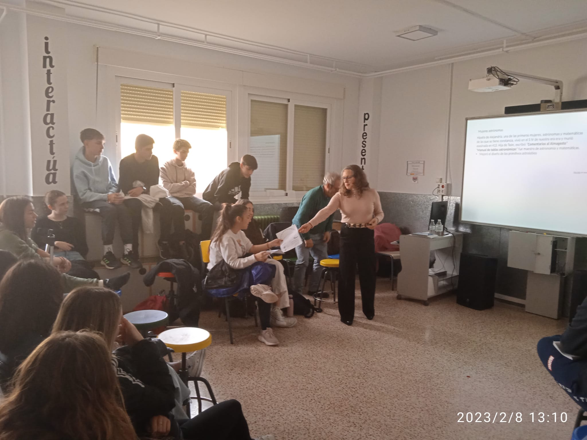 Durante la jornada, nuestra compañera Teresa Sánchez Olaya impartió una estupenda charla que versó sobre la mujer y la astronomía. Haciendo referencia a la contribución de las mujeres en la astronomía a lo largo de la historia.