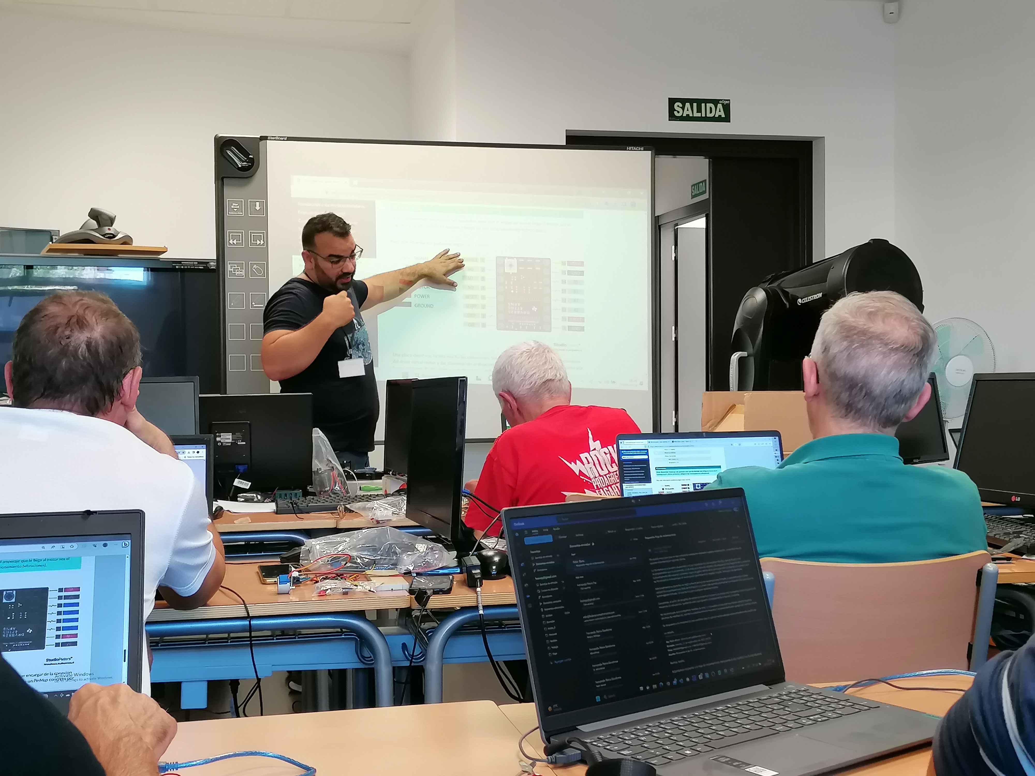 En la imagen podemos apreciar a Javier Flores, Astrofísico y miembro de la Asociación Astronómica Placentina "Mintaka" impartiendo clases sobre microcontroladores.
