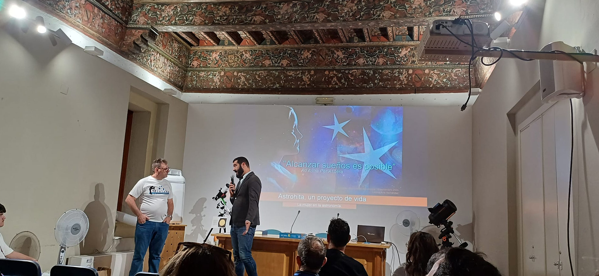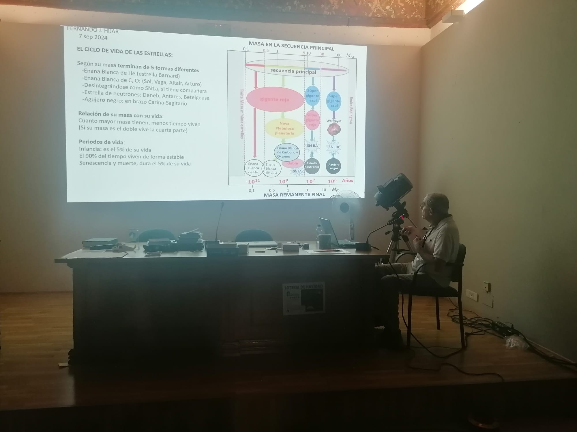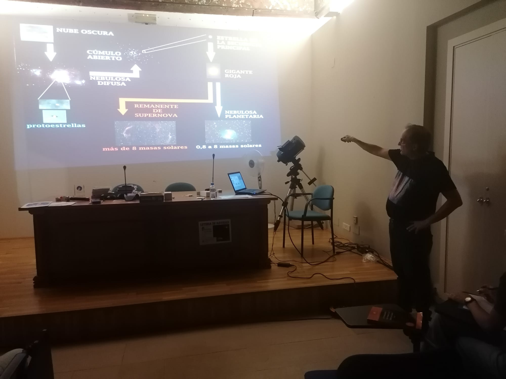 La conferencia más técnica y quizá de mayor nivel, aunque, no por ello menos interesante, le tocó al profesor Fernando Hijar. Nuestros jóvenes físicos y entusiastas de la astronomía, como David Calle o Celia Méndez quedaron encantados con esta hora de formación en física de alto nivel. En la que aprendimos a medir las estrellas, fotometría y un poco de espectrografía, pero sobre todo la vida de las estrellas, su secuencia principal. Gracias Fernando.