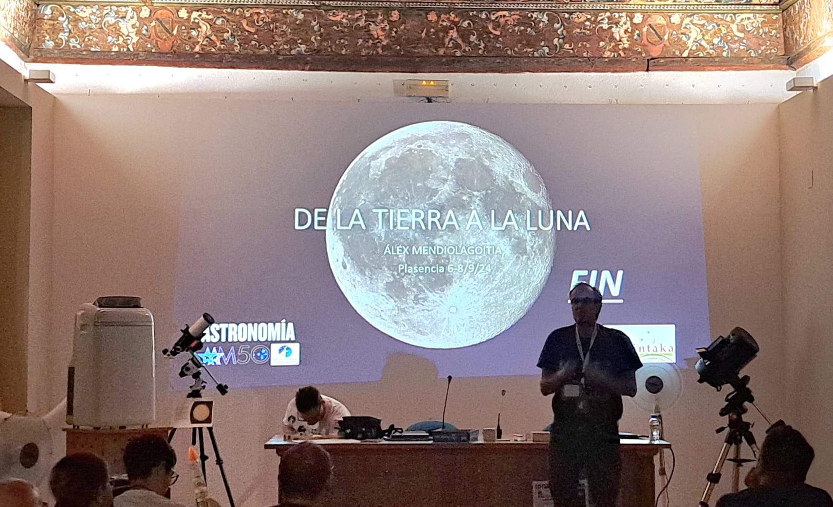 Alejandro Mendiolagoitia rápidamente además de sorprender con sus ponencias, se ganó el cariño del público con su personal forma de contarnos la aventura de la carrera espacial y el porqué de volver a la Luna y la importancia del regolito lunar.