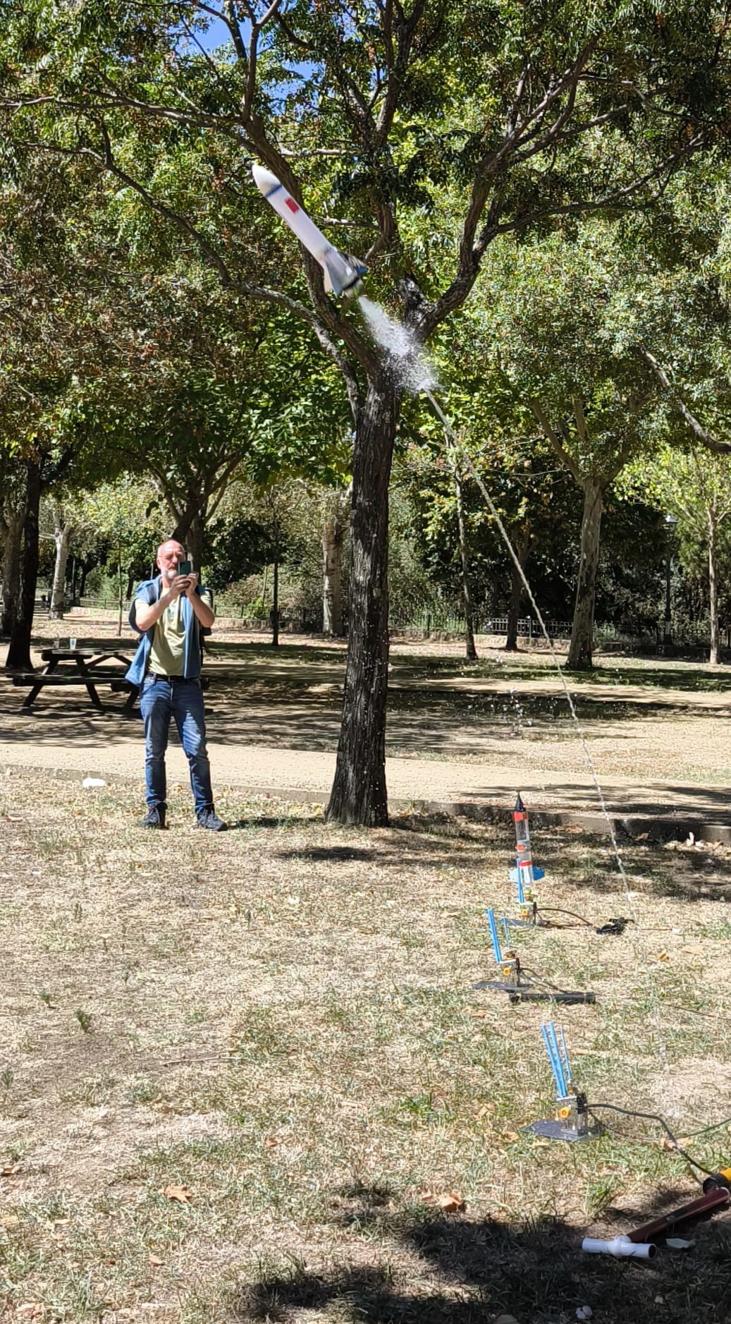 Lucas Martín Sánchez (Los Naranjos Eco-Home) Nos hizo disfrutar como niños con los lanzamientos de cohetes de agua y tanto la proyección solar como la observación directa gracias al telescopio Lunt Solar de la A.A.P. Mintaka. Agradecemos la colaboración de D. Oscar Martín Mesonero, quien nos ayudó tanto con el montaje, como con la puesta en estación de los equipos.