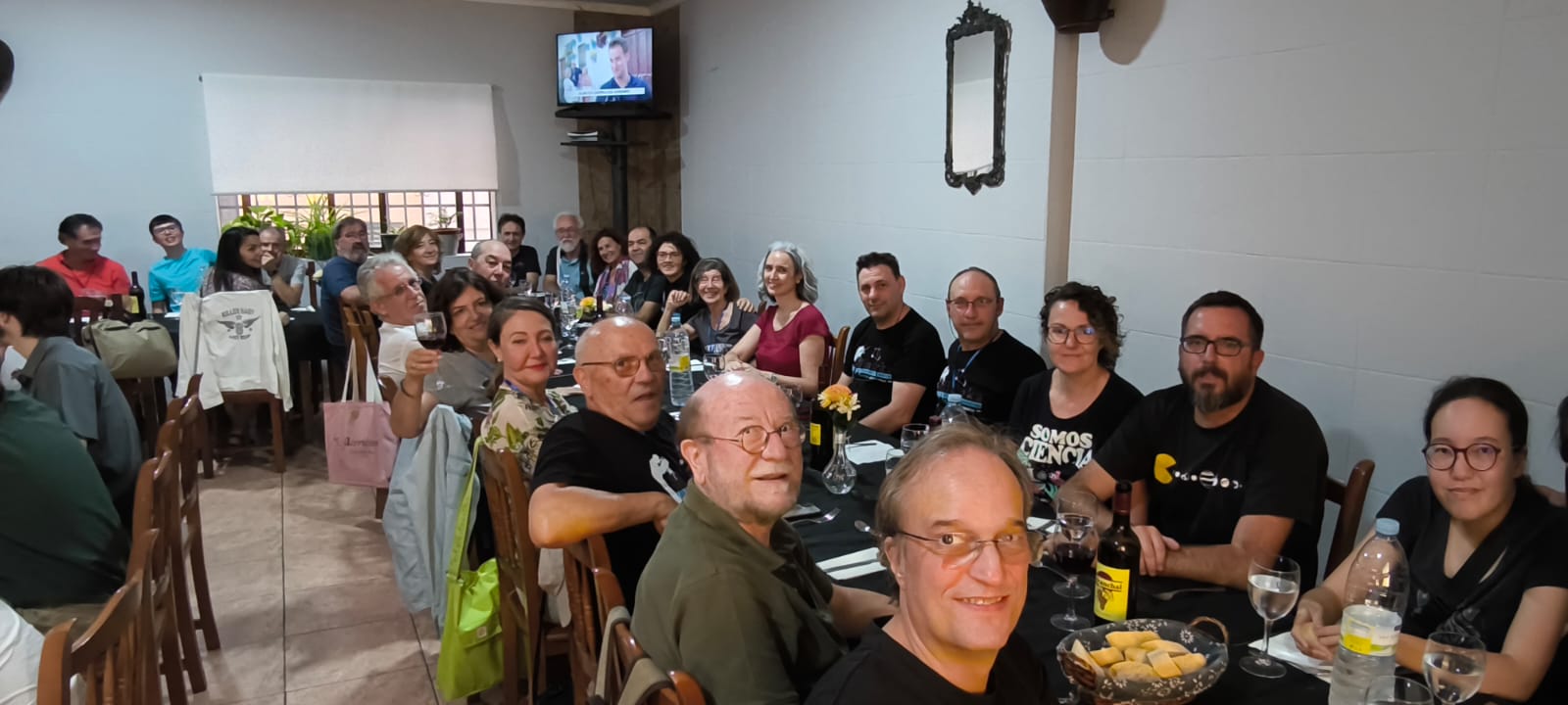 15:00 Receso, comida. Un momento de alboroto y distendido para reponer fuerzas en el Rte. El Yugo de Plasencia, que con mucha profesionalidad no solo nos dio de comer, sino que se adaptó a nuestras imprevisibles condiciones, ya que donde deberían haber comido 26 comimos 31, todo un reto, que, salió adelante sin problemas. GRACIAS.