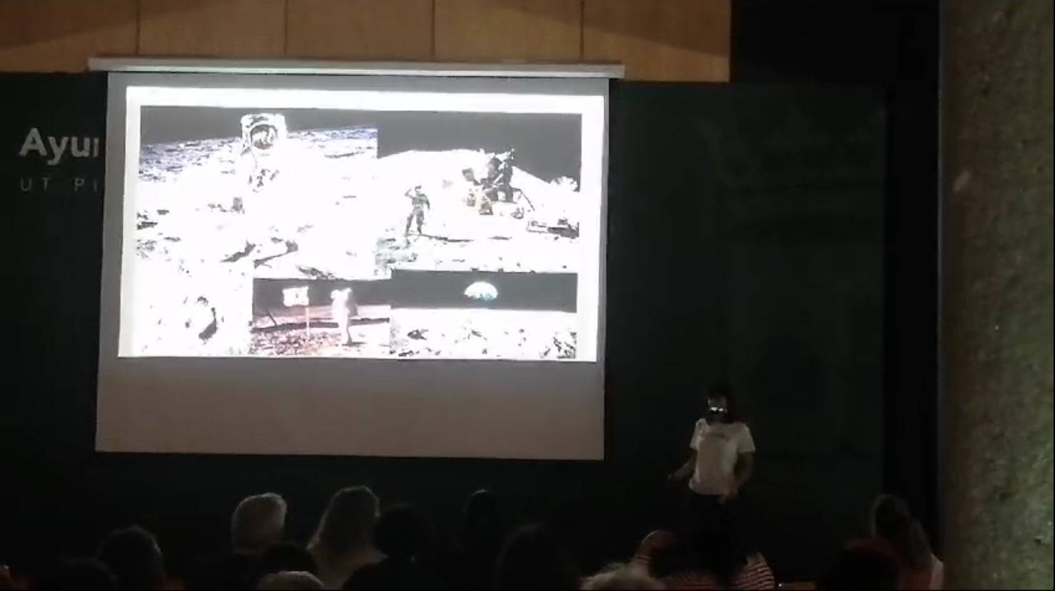 Hubo una proyección divulgativa del cielo que podremos observar en Septiembre. Y la intervención de Celia Méndez y Agustín García que nos hablaron sobre la Luna y la mitología de las constelaciones celestes, respectivamente.